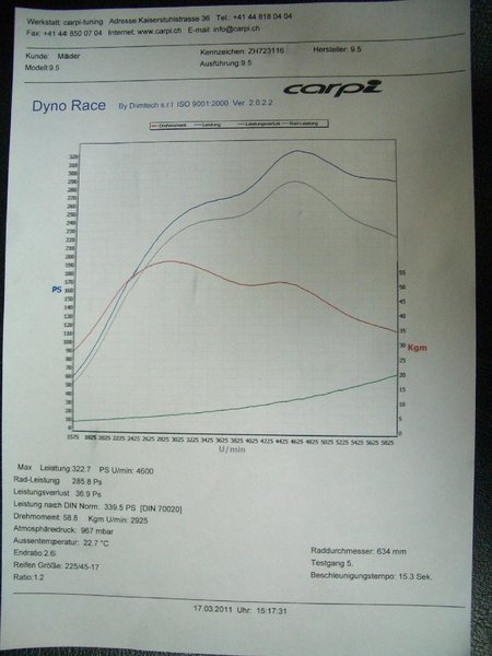 Hier ist das Leistungsdiagramm 322 PS und 588 NM